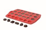 Силиконовая форма для сладостей подходит для приготовления самых разнообразных блюд: кексов и печенья, десертов, запеканок, жульена, мини-заливных, желе, пудингов, мусса, мороженного и многого другого. Обладая уникальными свойствами, температурный диапазон применения силиконовой формы от –25 до +220 °С. Силиконовую форму можно использовать для приготовления пищи в СВЧ (без включения режима «гриль»!), в духовом шкафу электрической или газовой плиты, а также для заморозки и хранения блюд в холодильнике. Благодаря гибкости формы содержимое легко вынимается. В этой форме можно сделать конфеты из 200 гр шоколада.