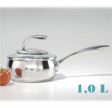 Металлический ковш 1л. Цена 69 латов. Отличительной особенностью внутреннего покрытия является исключительная по качеству нержавеющая сталь. В данном изделии использованы лучшие свойства алюминия: быстрый нагрев и долгое аккумулирование тепла, поэтому процесс закипания происходит быстрее, и блюдо «доходит» до готовности без огня. Такой быстрый процесс приготовления пищи сохраняет все витамины и минералы, а так же экономит время и электроэнергию. Толстые стенки ковша, массивное трехслойное дно и плотно прилегающая крышка делают возможным приготовление пищи с минимальным количеством масла и воды. Литые эргономичные ручки обеспечивают надежный захват. Они не нагреваются при приготовлении пищи, благодаря этому можно снимать Ковш с плиты без прихваток и рукавичек. Прозрачная стеклянная крышка позволяет следить за процессом приготовления не снимая крышки. Ковш имеет мерную шкалу (для отмеривания жидких ингредиентов), нанесенную при помощи лазера, благодаря этому не нужно искать дополнительные мерные емкости, что бы отмерить необходимый объем жидкости. Кроме того, благодаря лазерному методу шкала не сотрется со временем. Благодаря эргономичному дизайну и округлой форме содержимое ковша легко перемешивается ложкой. Благодаря округлой форме Ковша тепло распределяется максимально эффективно, и процесс приготовления пищи схож с томлением в печи. Видео